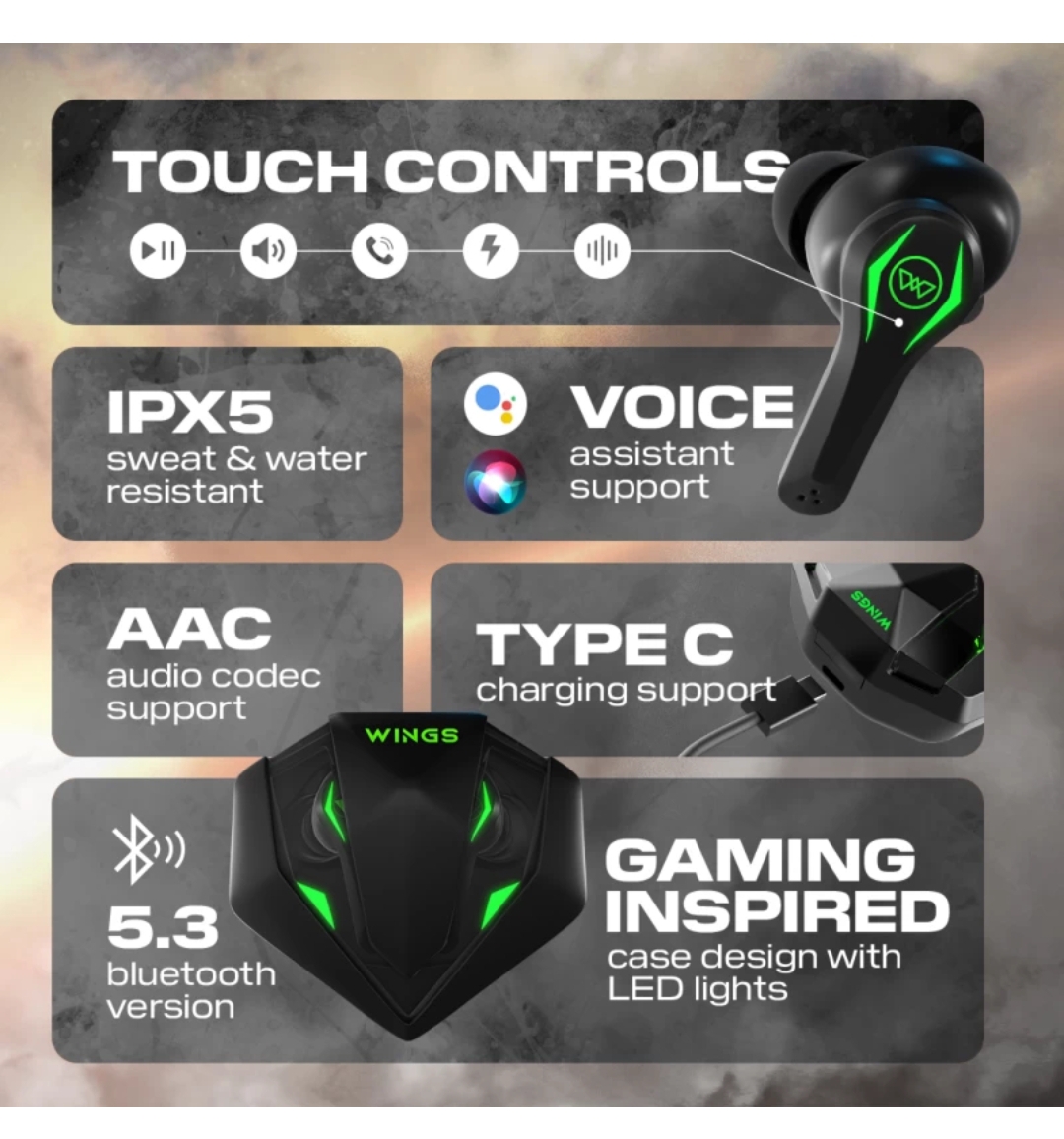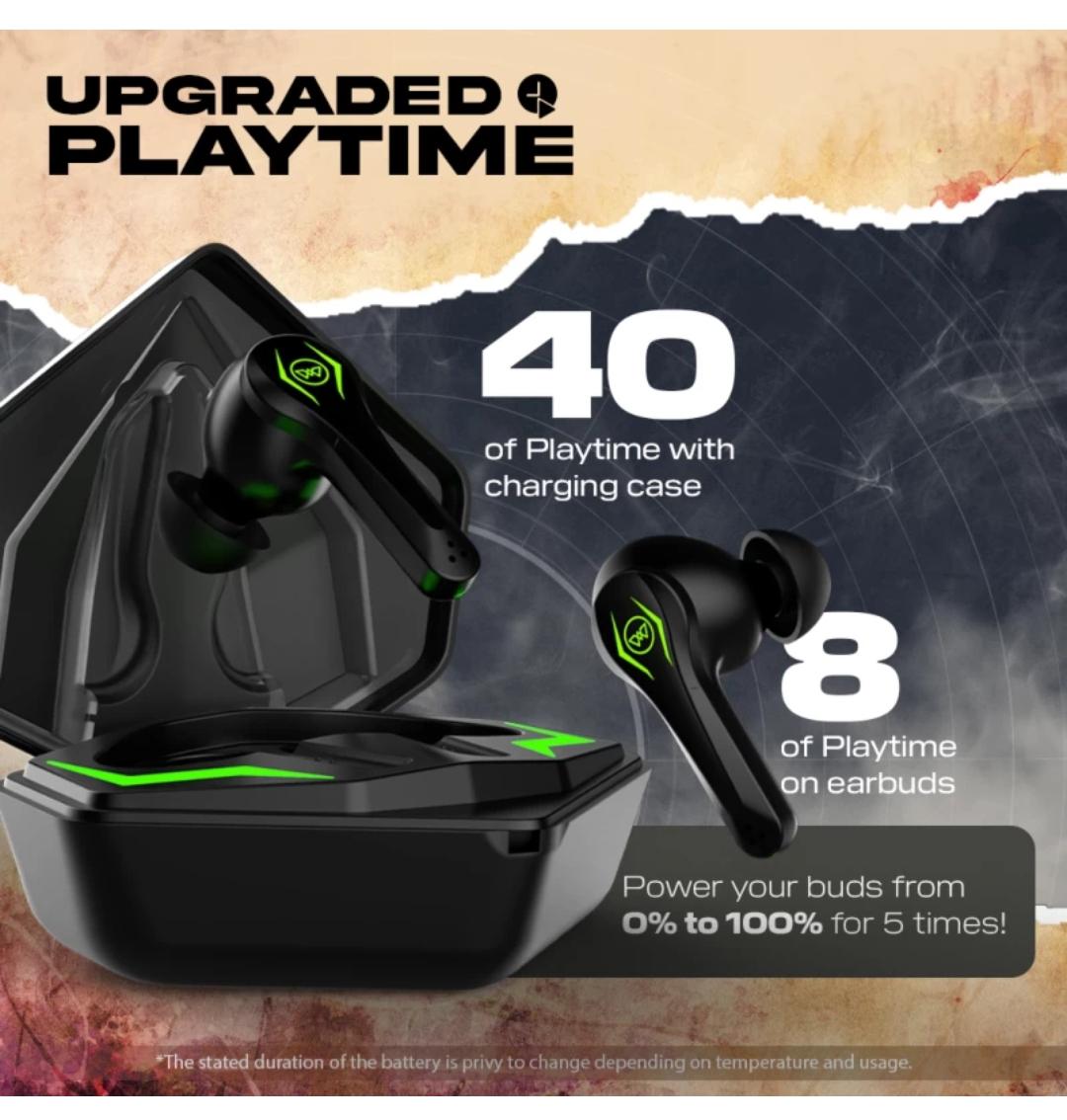 Wings Phantom Pro earbuds with Low latency Game mode, 40H Playtime, 50ms low latency Bluetooth Headset (Black, True Wireless)