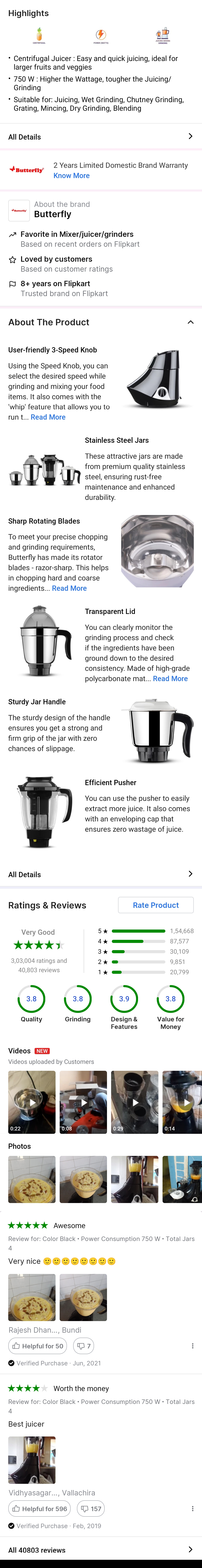 Butterfly Rapid - 4J / Rapid 750 W Juicer Mixer Grinder (4 Jars, Black)